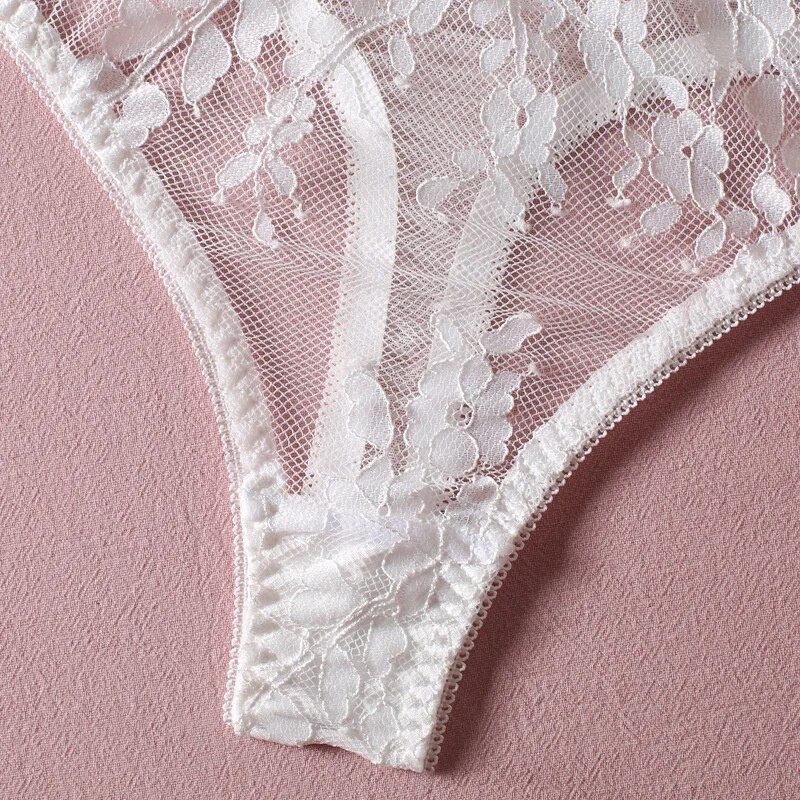 Set lencería dos piezas de encaje, copa de varilla y bandas ajustables.