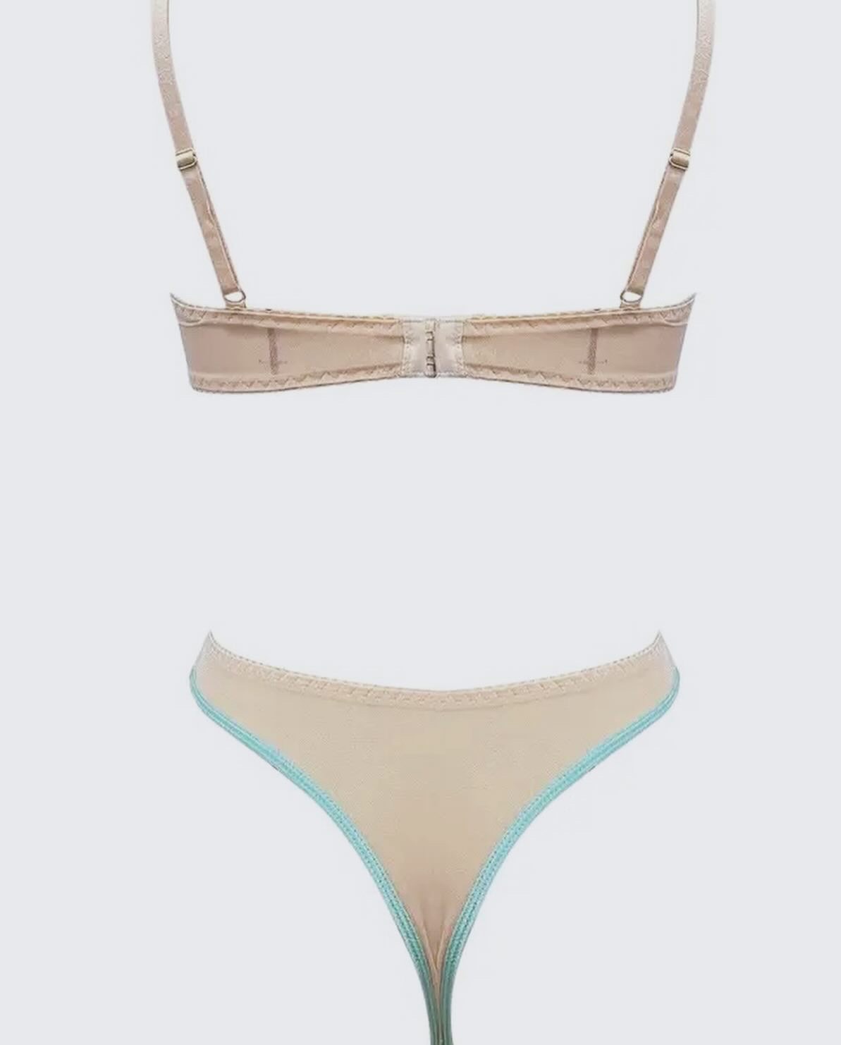 Set de lencería 2 piezas de encaje con transparencias, panty cerrado, tirantes graduales .